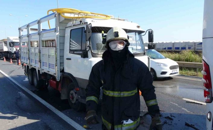 Antalya’nın Manavgat ilçesinde kamyon ile tur otobüsünün çarpışması sonucu meydana gelen kazada, şans eseri kimsenin burnu bile kanamadı. Kaza sırasında çarpmanın şiddetiyle kamyonun üzerinde bulunan asit tankları zarar görürken, yola dökülen asit nedeniyle büyük panik yaşandı. Maske takan itfaiye ve trafik ekipleri, vatandaşların asitten etkilenmemesi için araç sürücülerini camlarını kapatması, motosiklet sürücülerinin de kaza yerinden geçerken nefes almamaları konusunda uyarıda bulundu.