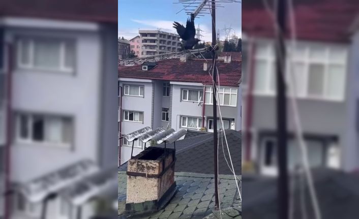 Sakarya’nın Erenler ilçesinde binanın çatısındaki antene sıkışan karga, itfaiye ekiplerinin yardımıyla özgürlüğüne kavuştu.