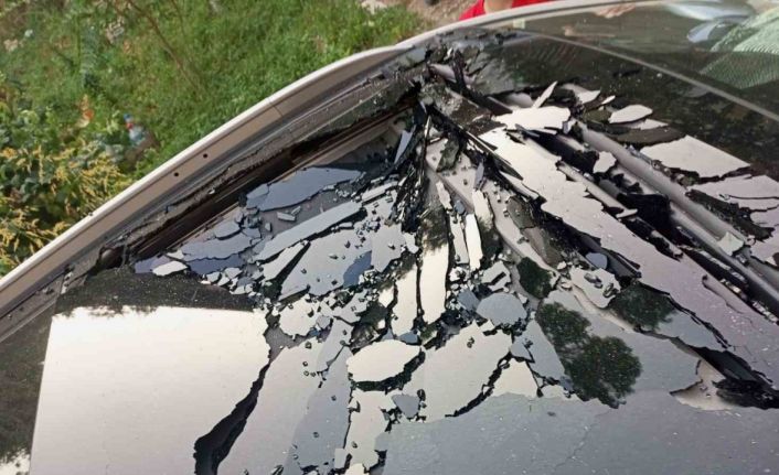 Bursa’nın Orhangazi ilçesinde park halindeki bir aracın üzerine yanındaki apartmandan atılan hayvan kemiği parçaları araca büyük çapta maddi hasar verdi. Aracın cam tavanını parçalayan kemik parçaları aracın tavanına da zarar verdi. Araçtaki maddi hasarın en az 20 bin TL olduğu belirtildi.