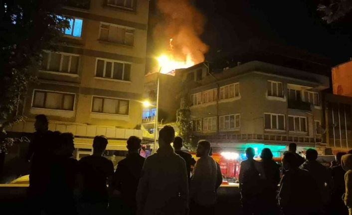 Apartmanın çatısı alev alev yandı.. Onlarca kişi sokağa çıkıp izledi