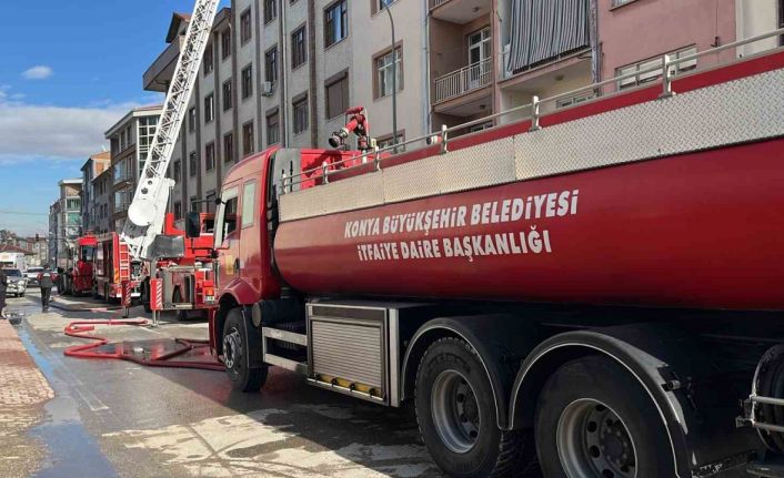 Konya’da 5 katlı bir apartmanın çatısında çıkan yangın paniğe neden oldu.