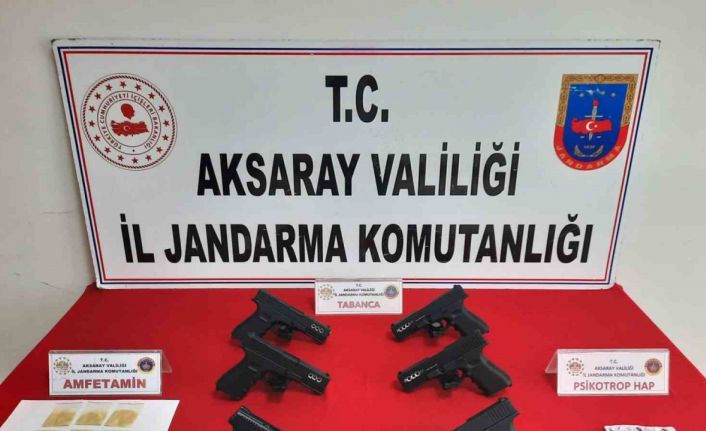 Edinilen bilgiye göre, uyuşturucu ve kaçakçılıkla mücadele çerçevesinde çeşitli çalışmalar yapan İl Jandarma Komutanlığı Kaçakçılık ve Organize Suçlarla Mücadele (KOM) ve İstihbarat Şubesi ekipleri, Adana ilinden Aksaray’da uyuşturucu sevkiyatı yapılacağı bilgisine ulaştı. Aksaray Cumhuriyet Başsavcılığı koordinesinde harekete geçen jandarma ekipleri, plakası belirlenen aracı Aksaray-Adana Karayolu üzerinde takibe aldı. Bir süre yapılan takibin ardından operasyon için düğmeye basan jandarma ekipleri, aracı durdurarak içinde bulunan M.A., A.G. ve F.Ş. isimli 3 şüpheliyi gözaltına aldı. Araçta yapılan aramada, araç içinde 90 gram amfetamin ve 1 adet psikotrop hap, aracın motor kısmında ise zulalanmış poşet içerisinde 6 adet ruhsatsız tabanca ele geçirildi. Gözaltına alınan şüpheliler, jandarmadaki işlemlerinin ardından Aksaray Adliyesine sevk edilirken, M.A. ve F.Ş. isimli şahıslar tutuklanarak cezaevine gönderildi. A.G. ise adli kontrolle serbest bırakıldı.