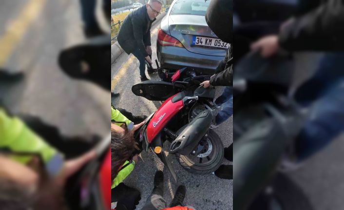Aracın altında sıkışan motosiklet böyle çıkarıldı