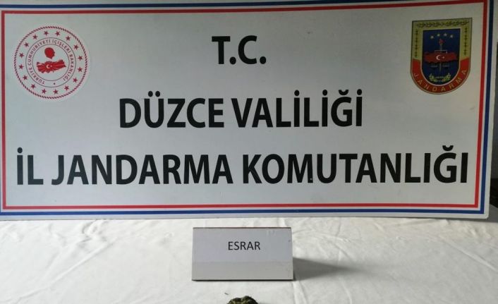 Düzce İl Jandarma Alay Komutanlığına bağlı ekipler uyuşturucu kullanımına ve bulundurmaya geçit vermiyor. Ekipler, Çilimli ilçesi yol üzerinde KOM köpek unsuru ile birlikte icra edilen yol emniyet ve kontrol faaliyetinde sürücülüğünü H. Ç.’nin yaptığı araçta yolcu olarak bulunan O. O.’nun bulunduğu otomobilde yapılan kontrolde, 3.2 gram kubar esrar maddesi ele geçirildi.
