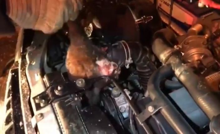 Burdur’da park halindeki aracın motor bölümüne giren ve sıkışan kedi kurtarıldı.
