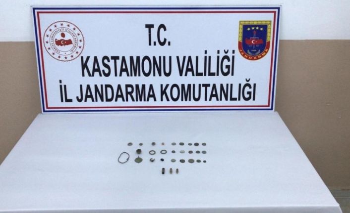Edinilen bilgiye göre, Kastamonu’nun Taşköprü ilçesine bağlı Çördük Köyü Mevkisinde icra edilen jandarma devriye faaliyeti esnasında şüphelenilen bir araç durduruldu. Durdurulan araçta jandarma ekiplerince yapılan aramada aracın yakıt deposuna gizlenmiş poşet içinde Roma dönemine ait olduğu değerlendirilen 16 adet bronz sikke, 4 adet bronz yüzük, 1 adet bronz kolye ucu, 2 adet metal obje, 2 adet tabanca fişeği ele geçirildi.