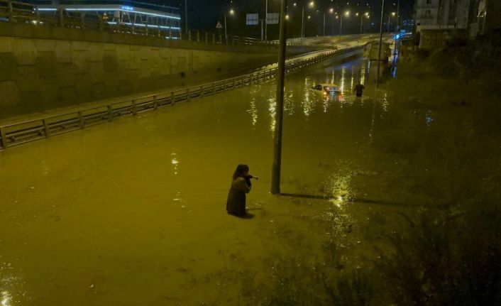 Bölgeye gelen bir trafik polisi ise tıkanan yağmur suyu kanalını açmak için uğraş verirken, suya gömülen araçları kurtarmak için bir iş makinesi yardıma koştu.