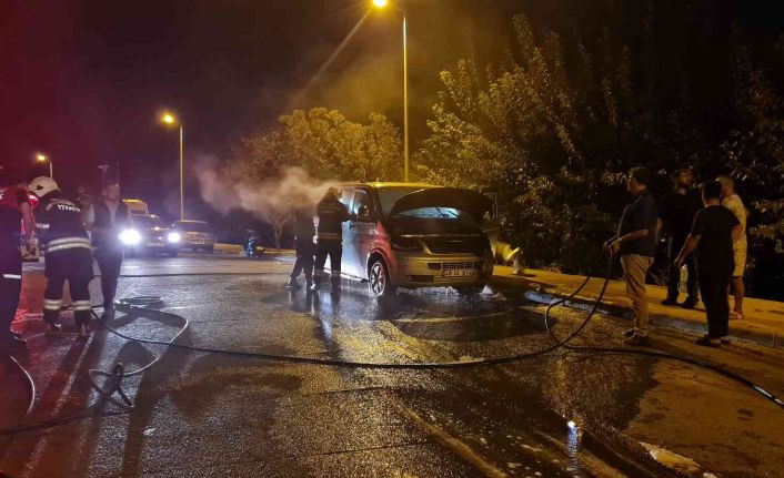 Bitez Mahallesi, Kocataş Caddesi üzerinde park halindeki minibüs, birden yanmaya başladı. Ön kısmı alevlere teslim olan aracı fark edenler, itfaiye ekiplerinden yardım istedi. Yangını gören vatandaşlar da damacanalarla alevleri söndürmeye çalıştılar.