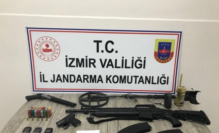 Şüpheli şahısların üzerinde yapılan aramada; 1 adet ruhsatsız el yapımı tabanca, tabancaya ait şarjör, 5 adet 7.65 fişek, 9 adet 9 mm fişek, 2 adet av tüfeği, 2 adet av tüfeği şarjörü, 21 adet fişek, 3 gram esrar, 1 adet uyuşturucu madde içmek için kullanılan bong tabir edilen aparat ve 1 dedektör cihazı ele geçirildi. Şüpheli şahıslar yapılan aramanın ardından jandarma ekipleri tarafından gözaltına alındı.