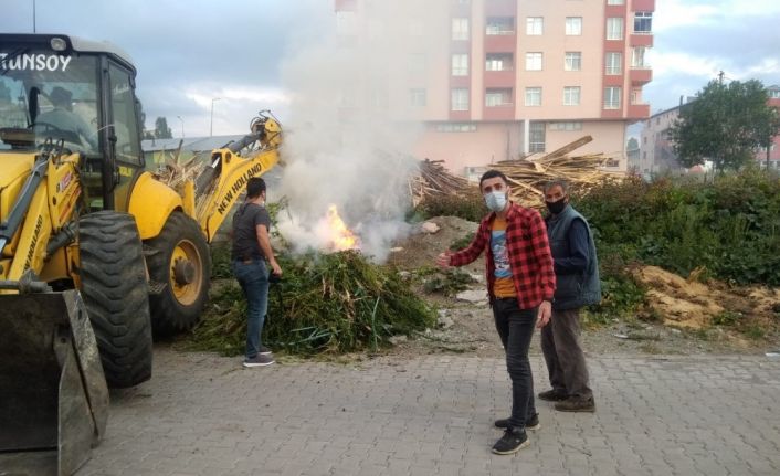Aramada ele geçirilen kenevir bitkileri olay yerinde imha edildi.