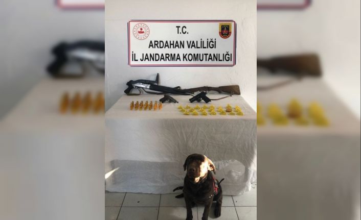 İl Jandarma Komutanlığı KOM Şube Müdürlüğü ekipleri, Hanak ilçesinde belirlenen bazı adreslere eş zamanlı operasyon düzenledi. Adreslerde yapılan aramalarda 1 adet 9 mm çapında ruhsatsız tabanca, 1 adet 7.65 mm çapında ruhsatsız tabanca, 1 adet ruhsatsız otomatik av tüfeği, 1 adet tek kırma av tüfeği, 20 adet 12 kalibre av tüfeği fişeği ve 12 adet büyükbaş hayvan küpesi ele geçirildi. Jandarmanın bomba arama köpeği Sağın’ın da görev aldığı operasyonda 2 şüpheli gözaltına alındı. Jandarmadaki işlemlerinin ardından adliyeye çıkarılan şüpheliler, tutuksuz yargılanmak üzere serbest bırakıldı.Ardahan’da kaçak silah ve sahte küpe operasyonu