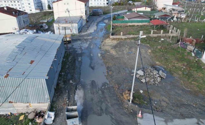 Mahalledeki yolların bozuk hali ve bırakılan borular dron kamerasıyla da görüntülendi.