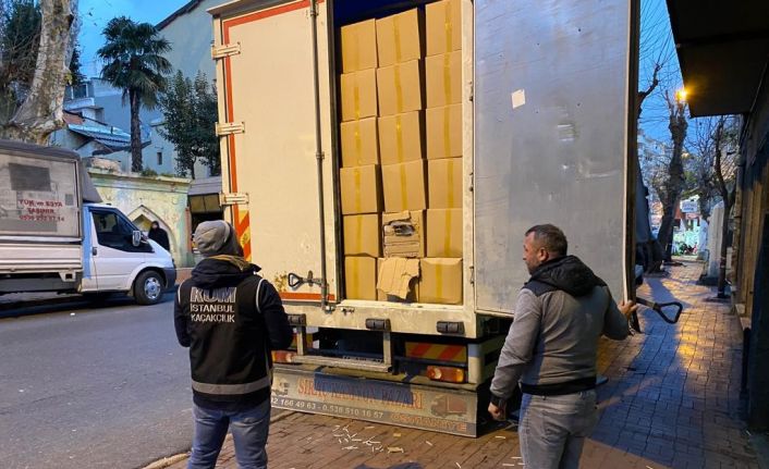 İstanbul’un Arnavutköy ilçesinde nakliye kamyonuna düzenlenen operasyonda, 6 milyon 400 bin dal sigara ele geçirildi. Kaçak tütün nakliyatında kullanılan kamyona el konulurken, sürücüsü gözaltına alındı.
