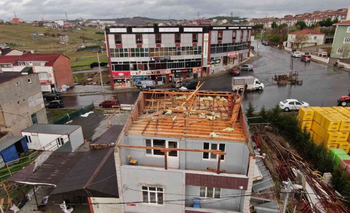 Arnavutköy’de fırtınanın etkisiyle iki binanın çatısı uçmuştu. Şiddetli lodosun etkisiyle hasar gören evler drone ile görüntülendi. Görüntülerde hasarın boyutu ortaya çıktı, çatı ve çatıdan kopan parçaların dairelerin içini adeta savaş alanına çevirdiği görüldü.