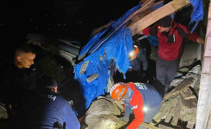 Artvin’in Borçka ilçesinde iki katlı ahır çöktü, içinde bulunan 33 büyükbaş hayvan kurtarıldı.