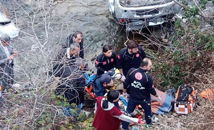 Dereye düşen otomobil vinç yardımıyla çıkartılırken, yaralıların durumlarının iyi olduğu öğrenildi.