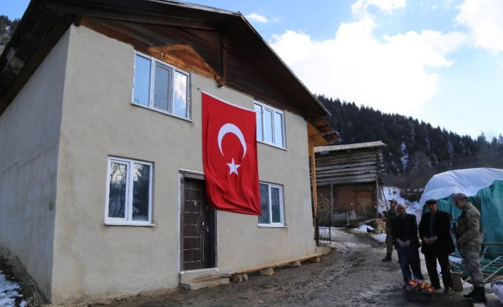 Van’ın Bahçesaray ilçesinde çığ altında kalarak şehit olan Jandarma Uzman Onbaşı Özen Akçam’ın Artvin’deki baba ocağına Türk bayrağı asıldı.
