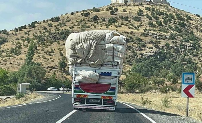 Diyarbakır’da aşırı saman yükü ile trafikte seyreden bir kamyonet çevresine tehlike saçtı. O anlar bir vatandaşın kameralarına böyle yansıdı.