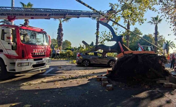 Asırlık çınar ağacı aracın üzerine devrildi