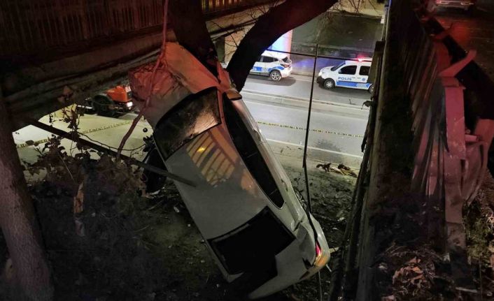 Çarptığı ağaçta dik bir şekilde asılı kalan araç ise çekici marifetiyle kaza yerinden kaldırılmasının ardından trafik normale döndü. Polis olayla ilgili inceleme başlattı.