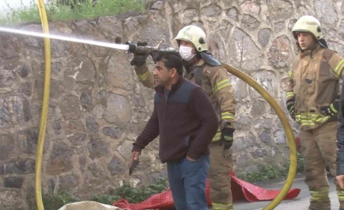 Ataşehir’de park halinde bulunan içerisi buğday yüklü nakliye kamyonu alevlere teslim oldu. Araç sahibi ise koşarak geldiği olay yerinde aracının yanışını çaresizce izledi.