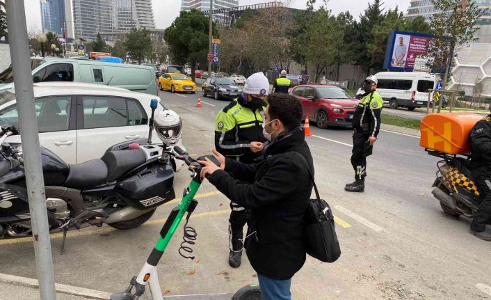 Ataşehir’de motosikletlere ve elektrikli scooter kullananlara yönelik polis tarafından denetim gerçekleştirildi. Denetim kapsamında, elektrikli scooter ile ters yönden ilerlediği belirlenen bir kişiye 196 TL ceza kesildi.