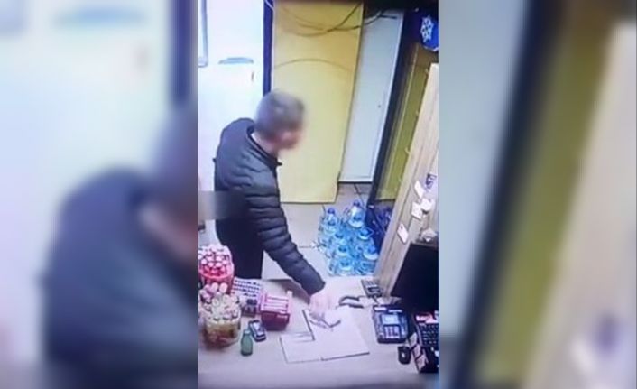 Şahsın tezgah üzerinde bırakılan cep telefonunu çaldığı anlar iş yerinin güvenlik kamerasına yansıdı Görüntülerde tekel bayiine giren şahıs çalışanın nerede olduğunu gözetliyor. Çalışanın kasada olmamasını fırsat bilerek tezgahtaki cep telefonunu alıp kaçıyor.