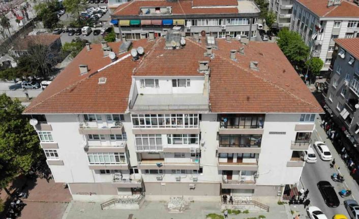 Öte yandan, riskli olduğu gerekçesiyle tahliye edilen bina havadan dronla görüntülendi.