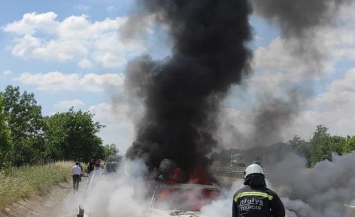 Tekirdağ’ın Ergene ilçesinde otobanda seyir halindeyken alev alan otomobil küle döndü.