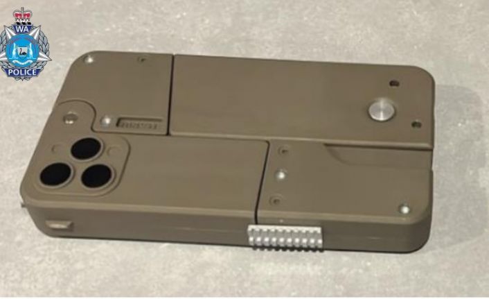 Avustralya’nın Mandurah şehrinde polis tarafından bir eve yapılan baskında, çok sayıda silah ve uyuşturucu madde ile iPhone şeklinde bir silah bulundu.