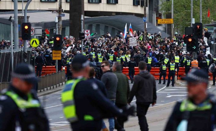 Avustralya’nın Melbourne kentinde Kara Kuvvetleri Uluslararası Kara Savunma Fuarı’nın gerçekleştirildiği Kongre ve Fuar Merkezi’nin önünde savaş karşıtı gösteri düzenlendi. Filistin yanlısı sloganlar atan göstericiler ve polis arasında çatışma çıktı. Polis tarafından yapılan açıklamada, şişe, taş ve at gübresi fırlatan göstericilerin polis memurlarına bazılarının asit olduğu belirlenen tahriş edici sıvı maddeler de sıktığı belirtildi. Açıklamada, göstericilerin fırlattığı cisimler ve sıktığı sıvılar nedeniyle 24 polisin yaralandığı ifade edildi. Polis göstericilere biber gazı, dikkat dağıtıcı cihazlar ve plastik mermilerle müdahale ederken, şu ana kadar 39 protestocunun saldırı, kundaklama ve yolların kapatılması gibi suçlar nedeniyle gözaltına alındığı açıklandı. Atlı polislerin de müdahalede bulunduğu gösterilerde, protestocular kurdukları barikatları ateşe verdi. Yaklaşık bin 200 kişinin katıldığı gösteride polis, bazı fuar katılımcılarının arbede sırasında yaralandığını belirtti.