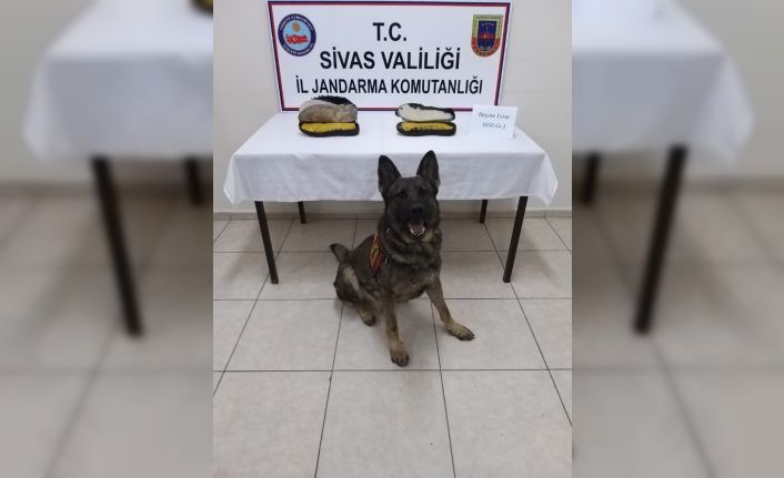 Sivas’ta jandarma tarafından yapılan yol kontrolleri sırasında narkotik köpeği ‘Geçim’ ayakkabı tabanında zulalanmış 650 gram reçine esrar buldu.