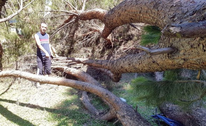 Aydın’ın Nazilli ilçesinde bulunan bir parkta piknik yapan ailenin üzerine dev çam ağacı devrildi. Şans eseri 3 kişi kendisini kurtarırken, 9 yaşındaki bir kız çocuğu ağacın dalları altında kalarak hafif şekilde yaralandı.