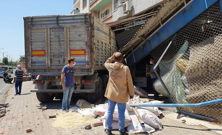 Edinilen bilgiye göre olay, saat 13.45 sıralarında Nazilli-Aydın Karayolu üzerinde meydana geldi. Mehmet S. (57) idaresindeki 20 GD 559 plakalı çekici tır, TARİŞ karşısında bulunan refüje çarptıktan sonra yaklaşık 50 metre sürüklenerek yem satışı yapan iş yerine daldı. Yem işletmesine ait kamyoneti de önüne katarak iş yerinin ofisine giren çekicinin ön tarafı binaya büyük hasar verdi. Çarpmanın şiddetiyle binadaki elektrik hatları hasar gördü ve elektrikler kesildi. Kaza sırasında çekicinin sürücüsü hafif şekilde yaralanırken, olay yerine gelen 112 sağlık ekiplerinin ilk tedavisinin ardından Nazilli Devlet Hastanesine kaldırıldı. Kaza sırasında çıkan büyük gürültüye koşan çevre sakinleri şaşkınlıklarını gizleyemezken, olayı anlatan işyeri çalışanları bir iki dakika ile hayatlarının kurtulduğunu, özellikle işyeri önündeki kamyonetin bariyer etkisi görerek daha büyük bir hasara ve can kaybına engel olduğunu ifade etti. İş yerinin önünde sürekli müşteri bulunduğunu, kaza sırasında müşterinin olmamasının ise büyük şans olduğunu belirttiler.
