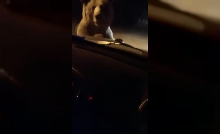 Bursa’da dağ yolunda ailesiyle ilerleyen bir otomobil sürücüsü Sarıalan’da cadde üzerinde çöpleri karıştıran ayı ve yavrularını görünce merak edip frene bastı. Anne ayı ve yavruları durumu fark edip kendilerini izleyen otomobildekilerin yanına geldi. Anne ayı otomobilin önünü kesip kaputa yaslandı. Korku dolu anlar yaşayan araç sürücüsü, ayının kaputtan çekilmesiyle hemen gaza yüklenerek bölgeden uzaklaştı. O anlar ise cep telefonu kamerasıyla saniye saniye kaydedildi.