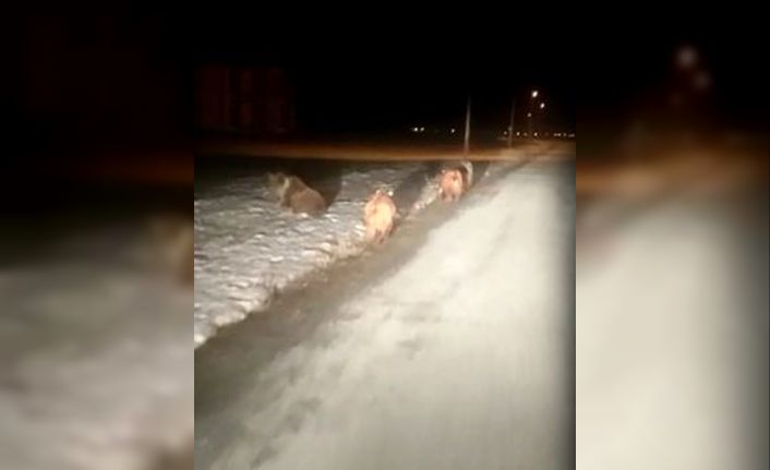 Van’ın Çaldıran ilçesinde sürü halinde yeniden yola inen ayılar korkuya neden oldu.