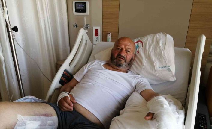 Kenan Gürcü, “Bahçeyi sulamaya gittim. Dereden çıkarak birden üzerime hücum etti. Komşularımız benim bağırmamı duyunca gelince bırakıp kaçtı. Bağırarak bana saldırdı. Ayağımdan kolumdan yaralandım. Hem ayağımı hem de kolumu kırdı” diye konuştu.