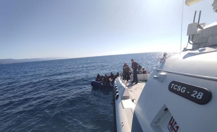 Çanakkale’nin Ayvacık ilçesi açıklarında Sahil Güvenlik ekiplerince durdurulan hareket halindeki lastik bot içinde 48 kaçak göçmen yakalandı.