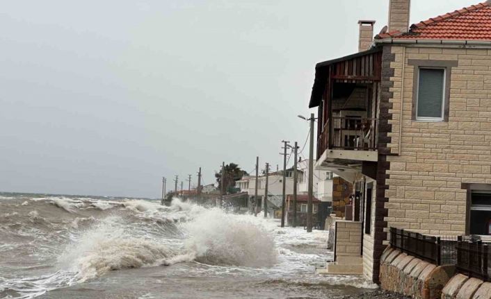 Çanakkale’nin Ayvacık ilçesinde etkili olan fırtına nedeniyle dalgalar adeta denizle karayı birleştirdi.