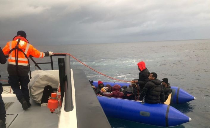 Balıkesir’in Ayvalık ilçesinde, Yunanistan unsurları tarafından Türk karasularına itilen göçmenler kurtarıldı.