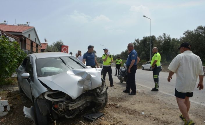 Ayvalık’ta kontrolden çıkan otomobil yayaya çarptı; 2 yaralı