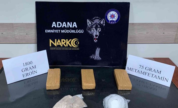 Adana’da evlerine yapılan baskında attıkları çorabın içinden 1 kilo 800 gram eroin ve 75 gram metamfetamin çıktığı öne sürülen baba-oğul tutuklandı.