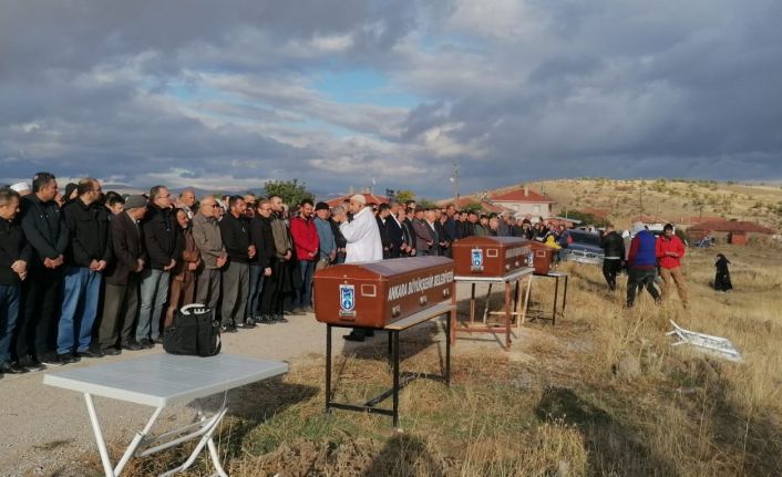 Ankara’nın Altındağ ilçesinde Mehmet Uğur tarafından öldürülen eşi Zuhal ile çocukları Tuğçe ve Yusuf Uğur, Eğriekin köy mezarlığında son yolculuklarına uğurlandı.