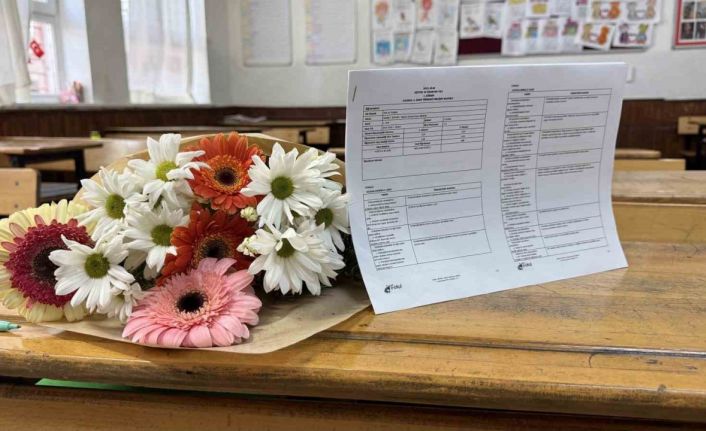 Adana’da babaları tarafından öldürülen Ada ve Mert’in karneleri, çiçeklerle birlikte sınıflarındaki masalarına bırakıldı.