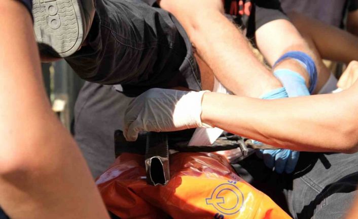 Bacağına saplanan korkuluk demiriyle hastaneye kaldırıldı