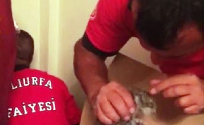 Şanlıurfa’da bir evin bacasında sıkışan yavru kedi, itfaiye ekipleri tarafından kurtarıldı.