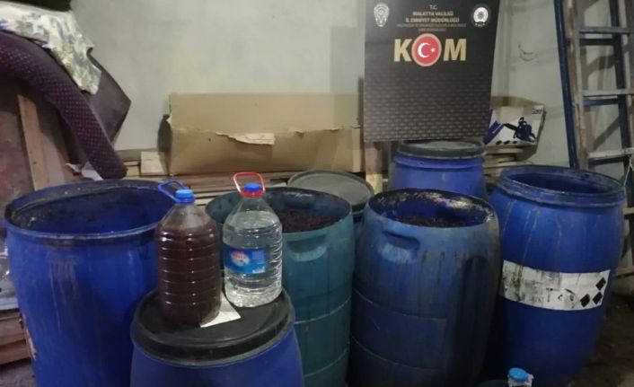 Malatya’da polis, bir ihbarı değerlendirerek, bağ evinde bin 234 litre el yapımı boğma rakı olarak bilinen kaçak rakı ele geçirdi.