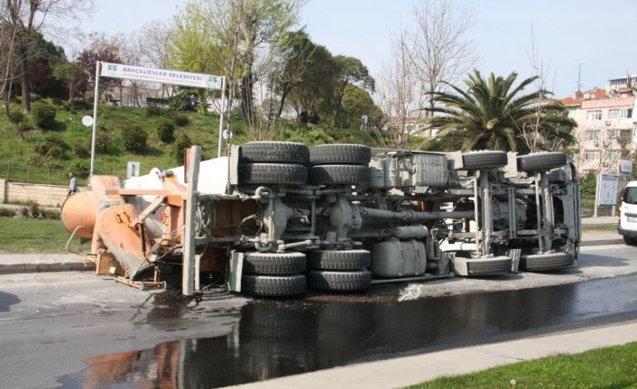 Bahçelievler’de virajı alamayan beton mikseri kaldırıma çarparak yola devrilmesi sonucu meydana gelen kazada 1 kişi yaralandı. Kaza nedeniyle trafik yoğunluğunun oluştuğu yol beton mikserinin kaldırılmasının ardından yeniden normale döndü.