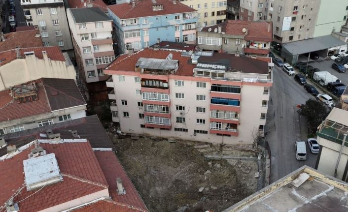 Bahçelievler’de temeli kayan bina havadan görüntülendi