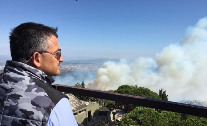 İzmir’in Karabağlar ilçesinde çıkan orman yangını rüzgar sebebiyle kontrol altına alınmakta güçlük çekilirken Tarım ve Orman Bakanı Bekir Pakdemirli rüzgara rağmen ekiplerin çalıştığını söyledi.